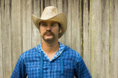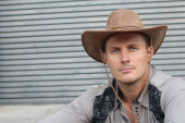 Przystojny człowiek w kapeluszu lato na zewnątrz portret zbliżenie. Wakacje.