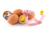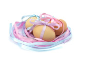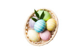 Pisanki w wiklinowym koszu