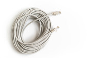 Kabel sieciowy kabel patch z wylewanych wtyk Rj45, na białym tle na białym tle