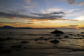 Zachód słońca strzał w Firth of Clyde do Isle of Arran.
