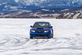 Obiekcie samochodu na wybrzeżu lodu na zachód zima