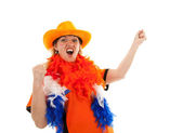 pokazuje suporter holenderskiej piłki nożnej kobiet
