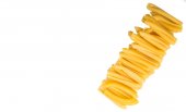 Makaron tagliatelle suszonych na białym tle