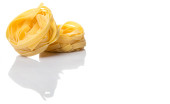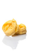 Makaron tagliatelle suszonych na białym tle