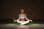 Pięknych młodych kobiet sportowiec stara się zrelaksować