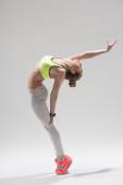 Zdjęcie "Wesoły gimnastyczka kobieta jest ćwiczenia w siłowni" może być wykorzystywane do celów osobistych i komercyjnych zgodnie z warunkami zakupionej licencji Royalty-free. Obraz jest dostępny do pobrania w jakości wysokiej rozdzielczości do 5760x3840.