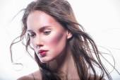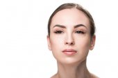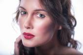 Atrakcyjna młoda dziewczyna z kosmetykiem na twarzy