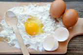 Zdjęcie "białej mąki z jaj, masła i drewnianą łyżką na boardzie gotowania" może być wykorzystywane do celów osobistych i komercyjnych zgodnie z warunkami zakupionej licencji Royalty-free. Obraz jest dostępny do pobrania w jakości wysokiej rozdzielczości do 5760x3840.
