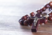 paciorki Różańca na stole