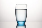 Połowa puste lub pół pełne szklanki wody na stół biały
