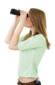 kobieta za pomocą lornetki