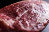 widok z góry surowego cielęcina są pokonać przez tenderizer mięsa
