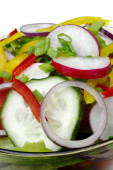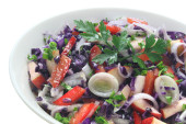 Sałatka z awokado, pomidory, papryka, czerwona cebula i kukurydzy