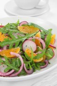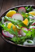 Sałatka z rukoli, rzodkiewka, cebula czerwona i mandarynki