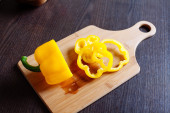 Zdjęcie "Żółta papryka na desce tnącej" może być wykorzystywane do celów osobistych i komercyjnych zgodnie z warunkami zakupionej licencji Royalty-free. Obraz jest dostępny do pobrania w jakości wysokiej rozdzielczości do 5760x3840.