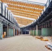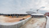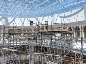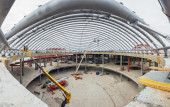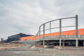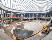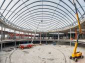 Pracy maszyn budowlanych. Postępy w budowie centrum handlowego Republiki.