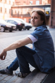 Zdjęcie "Młody człowiek w czerwony sweter i dżinsy siedzi na stołku" może być wykorzystywane do celów osobistych i komercyjnych zgodnie z warunkami zakupionej licencji Royalty-free. Obraz jest dostępny do pobrania w jakości wysokiej rozdzielczości do 5760x3840.