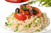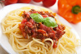 makaron spaghetti z sosem pomidorowym wołowym