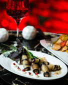 Zdjęcie "Płyta z pieczony bakłażan rolkach" może być wykorzystywane do celów osobistych i komercyjnych zgodnie z warunkami zakupionej licencji Royalty-free. Obraz jest dostępny do pobrania w jakości wysokiej rozdzielczości do 5760x3840.