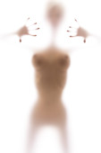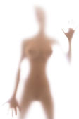 Sexy silhouette behind the blurred glass, visible hands and fing