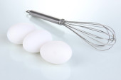 metalowa Trzepaczka do ubijania jajek z krem na białym tle