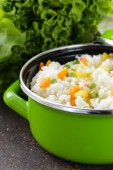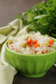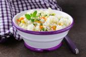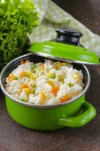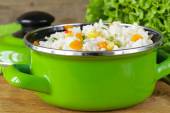 Gotowany ryż z różnych warzyw (marchew, kukurydza i groszek zielony)