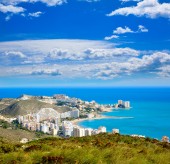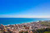 Antena z panoramę miasteczka Valencia plaża Cullera