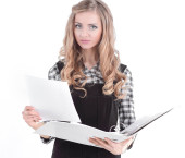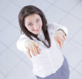 piękna kobieta trzyma laptopa. na białym tle na białym tle.