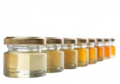 Różne gatunki i kolory miodu w słoiki na białym tle