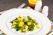 Zdjęcie "Mango świeże, rukola, kiwi, pomarańcza i granat." może być wykorzystywane do celów osobistych i komercyjnych zgodnie z warunkami zakupionej licencji Royalty-free. Obraz jest dostępny do pobrania w jakości wysokiej rozdzielczości do 5760x3840.