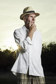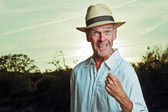 starszy mężczyzna Cieszący natura piękny letni dzień.
