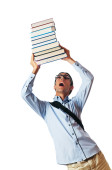 biznesmen z książek na biały