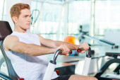 młody człowiek na rowerze na siłowni
