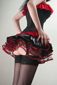 kobieta w spódnicy fetysz czarny i czerwony na niebieskim tle