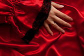 czarny i czerwony gorset z ręki na białym tle nad białym