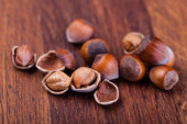 Wyświetlić zbliżenie orzechy laskowe na białym tle