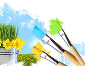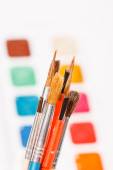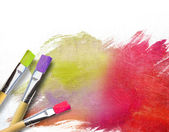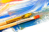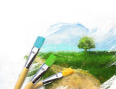 Szczotki artysty w połowie gotowy malowane na płótnie
