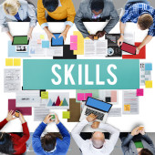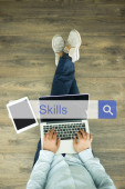Człowiek za pomocą komputera i umiejętności koncepcja
