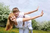 matki z jej córka na zewnątrz