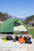 Zdjęcie "Camping na szczycie góry." może być wykorzystywane do celów osobistych i komercyjnych zgodnie z warunkami zakupionej licencji Royalty-free. Obraz jest dostępny do pobrania w jakości wysokiej rozdzielczości do 5760x3840.