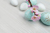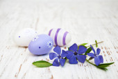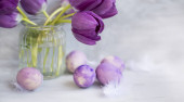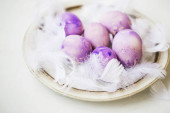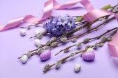 Fioletowy Wielkanoc jaja ozdoba z wiosną pąki oddziałów