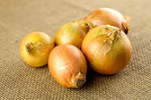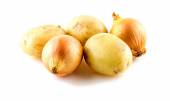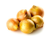 Pożywne nieobrane cebuli i ziemniaków na białym tle