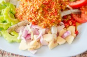 Tajskie jedzenie, sos chilli tomato dip z tajskich ziół, nieostrość