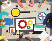 Zdjęcie "kreatywnych osób pracujących przy stole" może być wykorzystywane do celów osobistych i komercyjnych zgodnie z warunkami zakupionej licencji Royalty-free. Obraz jest dostępny do pobrania w jakości wysokiej rozdzielczości do 5760x3840.
