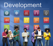 Zdjęcie "Uczniowie za pomocą urządzeń cyfrowych, surfowanie po Internecie, dyskusji i uśmiechając się" może być wykorzystywane do celów osobistych i komercyjnych zgodnie z warunkami zakupionej licencji Royalty-free. Obraz jest dostępny do pobrania w jakości wysokiej rozdzielczości do 5760x3840.