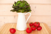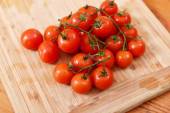 piękne i soczyste pomidory na drewnianym tle rustykalnym