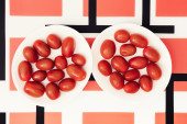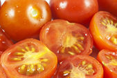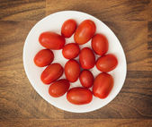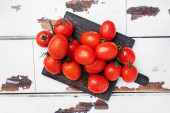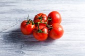Szczegółowe zdjęcie pomidorów cherry na drewniane tła