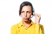 biznes kobieta z zestawem słuchawkowym i rozmowy z businessm