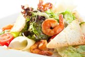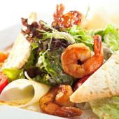 Krewetki z grilla i sałatki gruszki