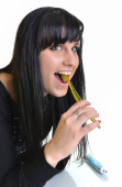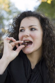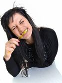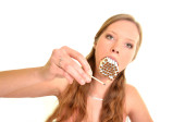 portret pięknej młodej kobiety, trzymając w ręku pyszne lody